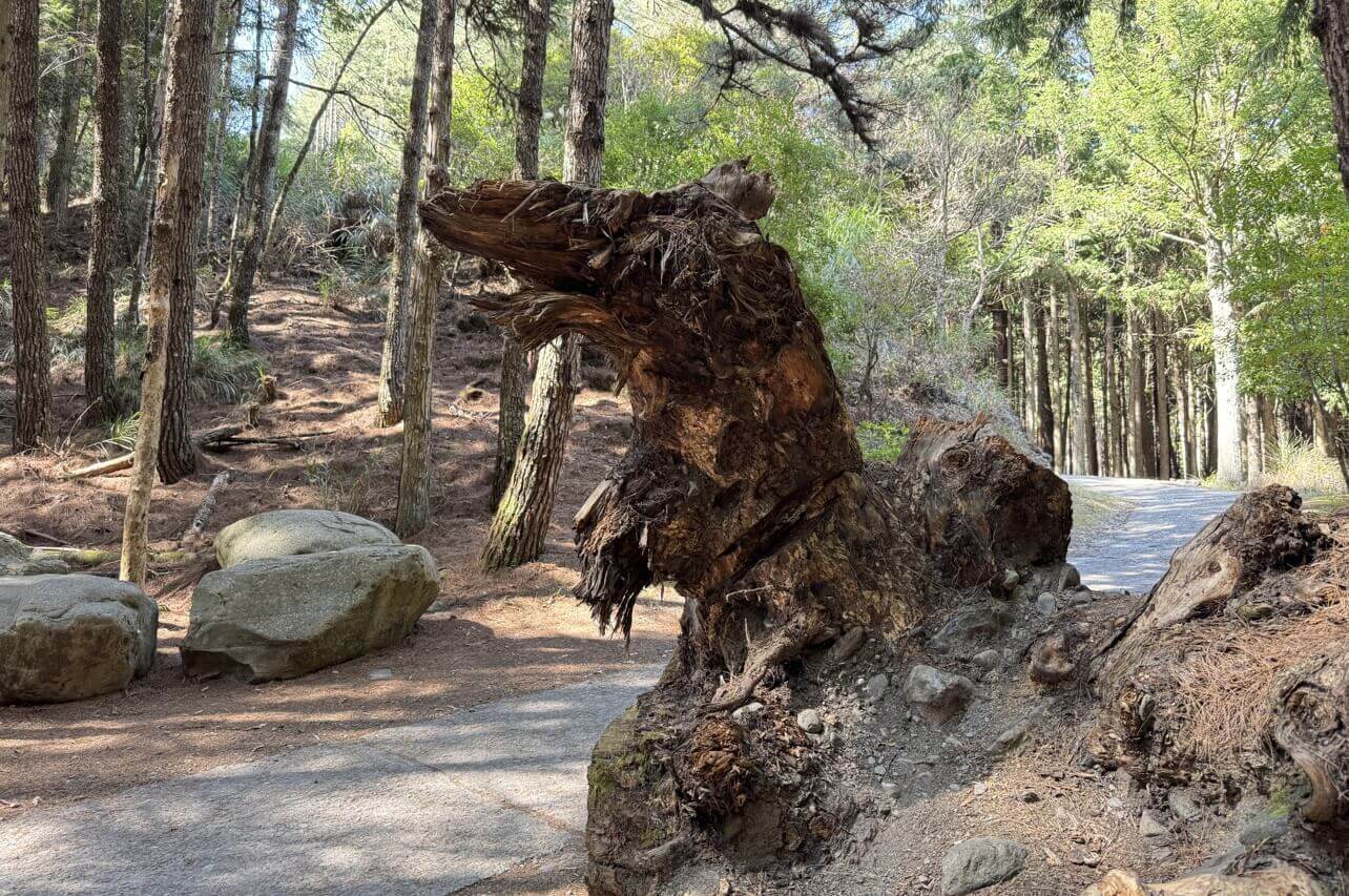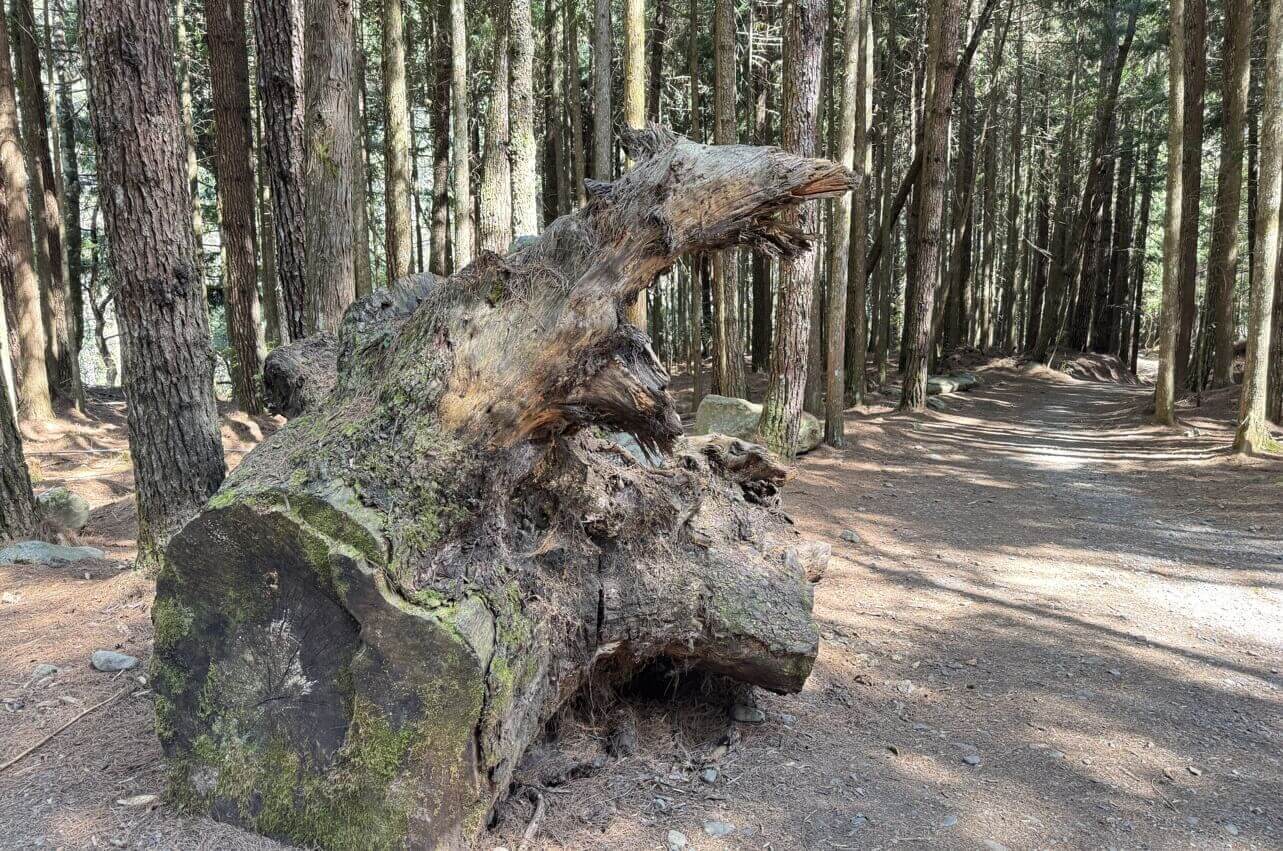 ↓經過山徑旁的這座枯木,看起來像是一條狗。