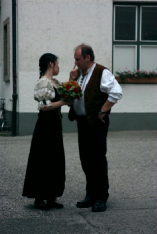 她定定的看著我 然後笑著走向我