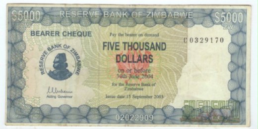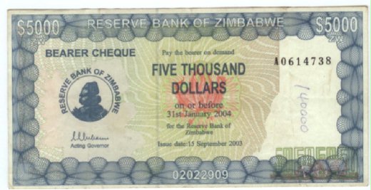 日非洲之辛巴威一國所發行使用之錢幣。同時在紙幣中間處註明使用到