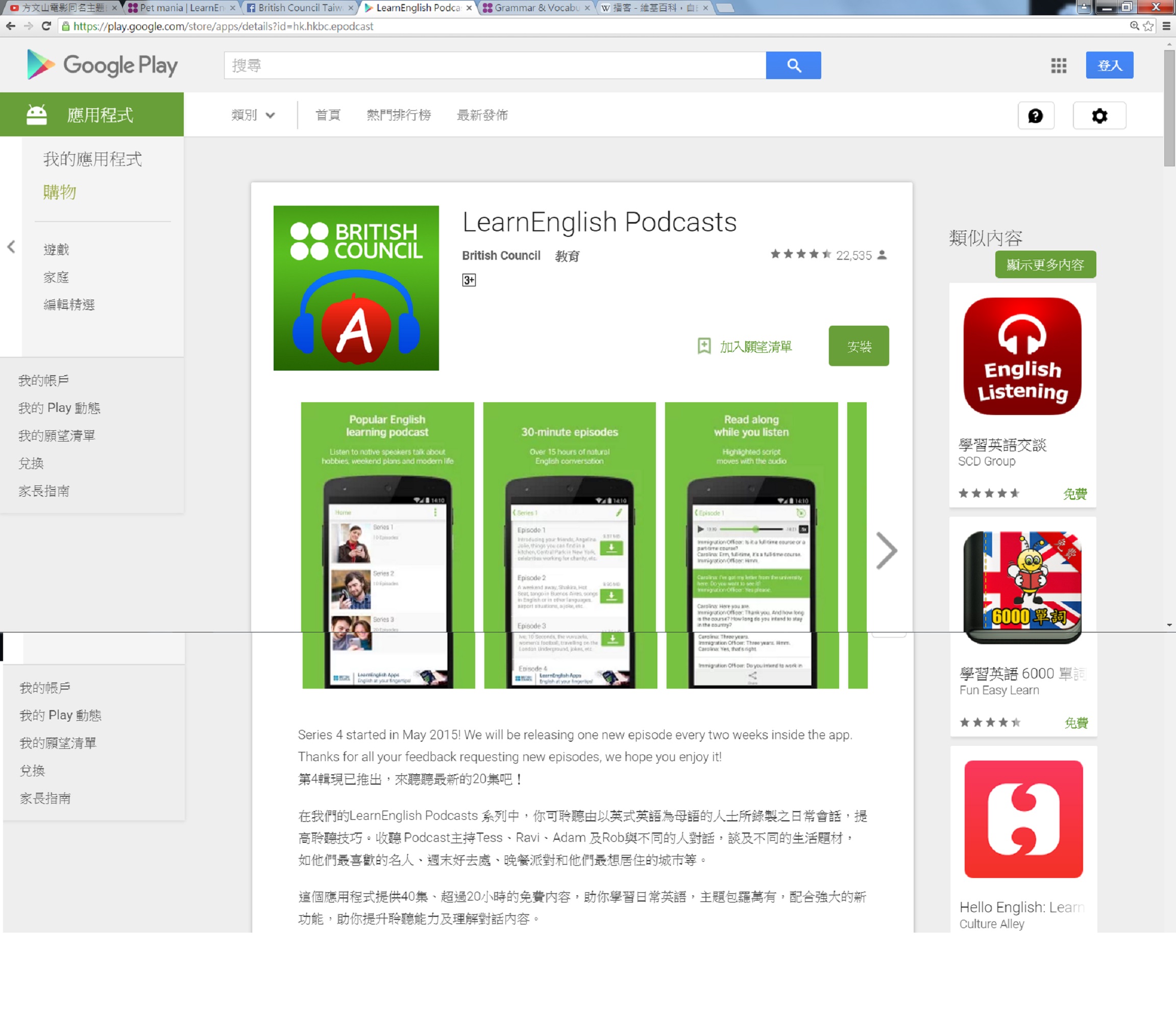 LearnEnglish Podcasts 是由British Council 英國文化協會所推出的一系列英語學習app中的一款。此協會致力提供英語教育超過80年,在100多個國家協助逾1,000萬人提高英語水平,建立自信。而這項app的特色在於可聆聽到以英式英語為母語的人士所錄製之日常會話,提高聆聽技巧。