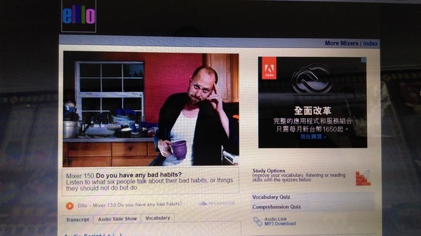 這是一個 Free Online Listening Resources ,進入此網站練習聽力,同學可依自己程度選擇顯示或隱藏聽力內容,聽完馬上可做聽力測驗。如果覺得聽不懂,沒關係~這網站有很貼心的功能:transcript文字檔可看。
