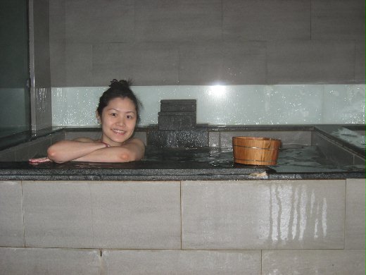 陽明山水-有點小失望. 我訂的是他們的山水豪華房, 是最貴的一間, 網路上的照片很美,但實地的感覺就有點髒髒舊舊的了. 一走進房間溼氣很重, 除溼要開到最大. 床上有螞蟻, 沙發跟地毯都感覺很髒, 所以不太敢坐. 但泡湯池是在室外的,所以泡起來很舒服. 因為還下雨,所以泡湯時很詩情化意. 晚餐是中式有4道菜一湯,不知道是不是肚子太餓了,感覺還不錯, 但早餐的清粥小菜就沒什麼了… 因為覺得baby太小了, 不敢讓她泡,所以,就抱著她一起沖澡, 還蠻好玩的, 她也很開心.