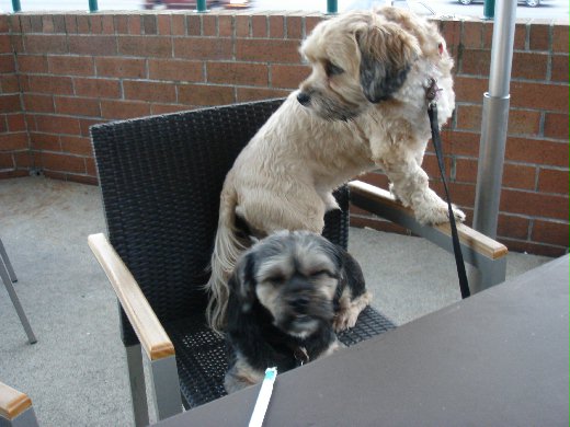 他們兩對狗疼愛有加.不亂寵.訓練的不錯.只是有了狗. 我何時做阿媽啦!