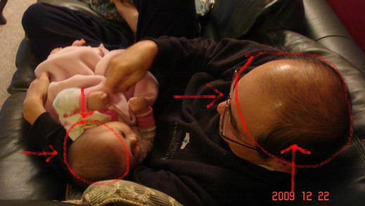 ㄚ公: " 小米怎麼和ㄚ公一樣, 都沒頭髮?"