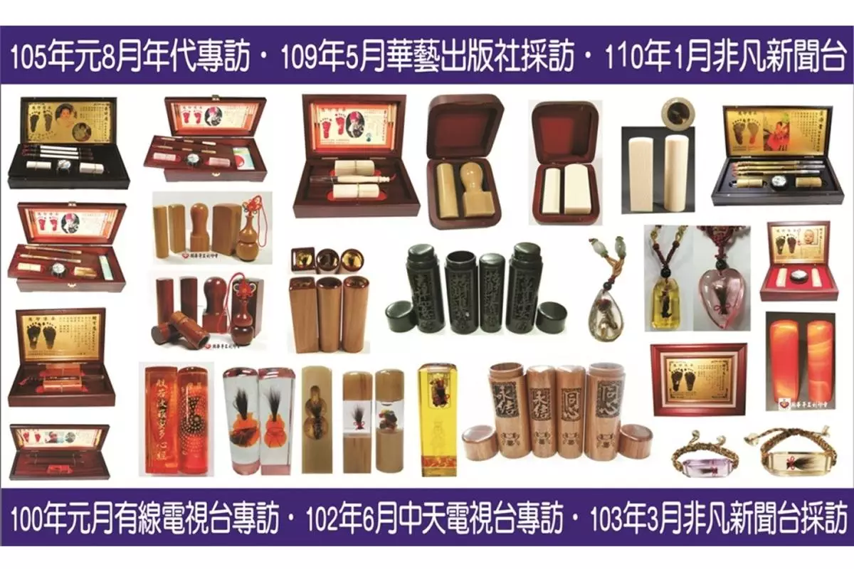 包括手工開運印章、平價常用章、胎毛筆、公司大小章、印鑑章、姓名印章、開運印章、臍帶章、印章盒、胎毛章、印泥、印油、代工刻印章(絕不外包)、嬰兒三寶等。