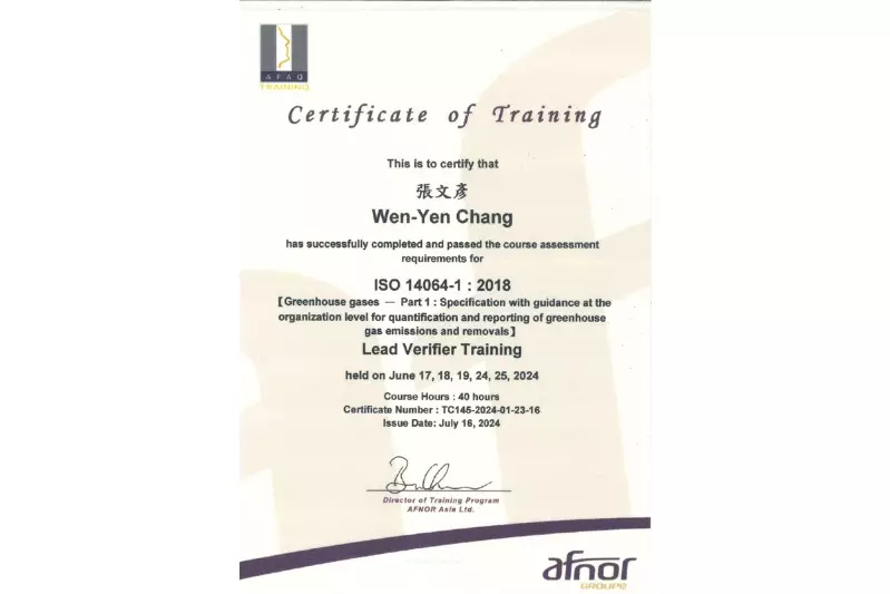 淨零排時代來臨,本公司亦取得ISO14064-1主導查證員證之證書,將在環境保護領域上,為各行業提供全面的環境保護解決方案。