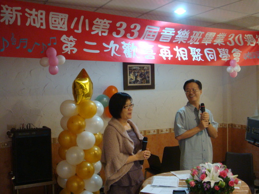 今年小學同學會的兩位主辦人 范秀容(左) 與 葉治豪(右) 都是我們班很會念書的前幾名, 這次在他們的號召下, 雖然來的同學沒有過半, 但是, 已經爲本班建立起不錯的 Database, 在這裡要 特別謝謝他們所付出的時間與精力! 辛苦了!