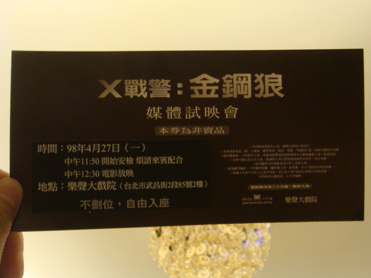 中圖, 爵士 看 X戰警 : 金鋼狼 試片票根的 背面!