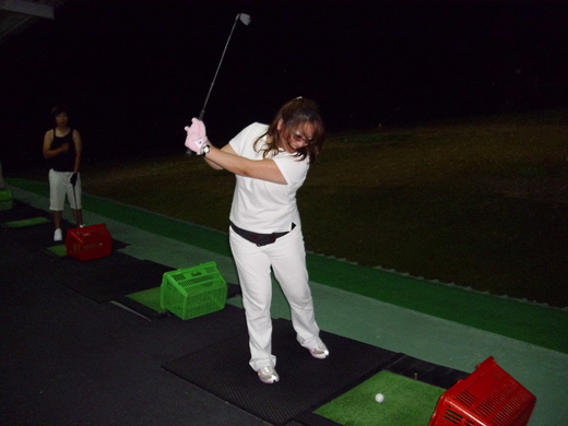 中圖 與 下圖 都是 新社友 Maggie, 您會打高爾夫嗎? 看她的姿勢, 覺得如何? 給她點意見吧! 指點指點, 讓她可以好好地學 Golf!