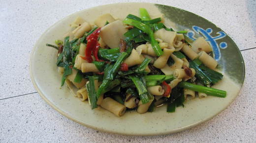 下圖, 吃完澱粉類, 再吃點 炒鵝腸 (肉類), 有口感 又不會被吸收 (因為已經飽了)!