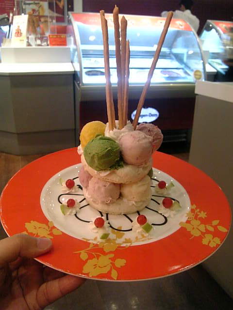 在看片前, 爵士 到 哈根達斯 吃了一客好吃的冰淇淋 (長相好像農曆七月拜好兄弟的東東, 呵呵!)!