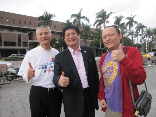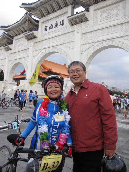 上圖, 爵士 11/24 (二) 到 自由廣場 迎接 剛環島回來的 PE.Cherry (左), 她的老爺 賢哥 也特地前來迎接, 賢伉儷的感情 真是 好得沒話說!
