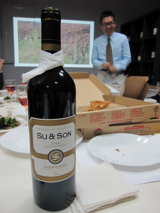 中圖, 圖中這瓶酒 可是有得獎滴喔! 很適合台灣人的口味! 正在演講的是