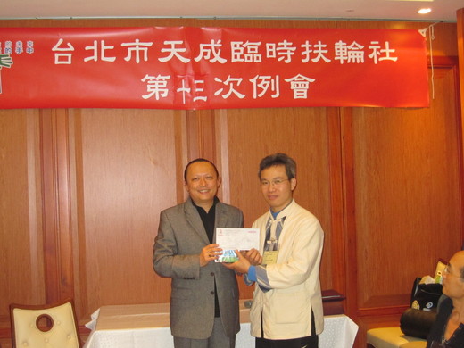 下圖, 爵士 以 社長的身分 致贈 禮品 & 車馬費, 感謝 已俱備扶輪精神的 呂醫師 將車馬費 捐回社裡, 作為 社區服務之用, 實在是太棒了! 感恩!