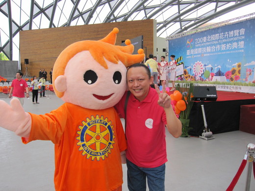 上圖中, 這些穿著黑白色服裝的都是 爵士 的 大學同班同學 或 另一半, 大家可能會覺得奇怪, 爲何 爵士 會穿黃色這麼鮮豔的衣服出席; 因為那天早上, 爵士 擔任 台北花博會與國際扶輪七個地區簽署合作備忘錄記者會的 節目主委, 既然是 花博, 當然, 必須穿得亮一點! (記者會時, 甚至要穿 桃紅色的 Plol衫, 下圖), 跟 爵士 心裡當時惦記著 同學追思會的心情, 真有 天壤之別。