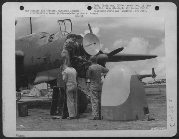 下面的照片是安裝在P-61的SCR-720空載雷達。照片來自維基。