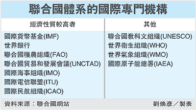 最快一周內公布政府未來推動參與聯合國體系國際組織的對象及方式,而且不排除國際貨幣基金(IMF)或世界銀行等高度財經性質的組織。
