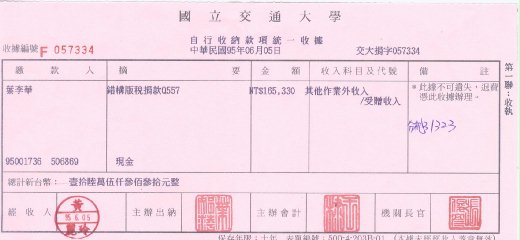 今天,完成了第一刷版稅(台幣165,330元)的捐贈手續,為昭公信,謹將收據掃瞄檔張貼於此。