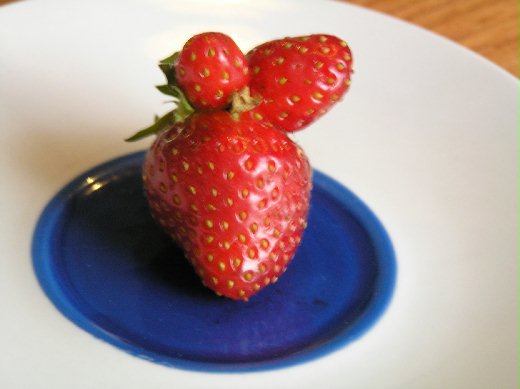早餐時,發現了一顆像兔寶寶的草莓,樣子可愛極了!