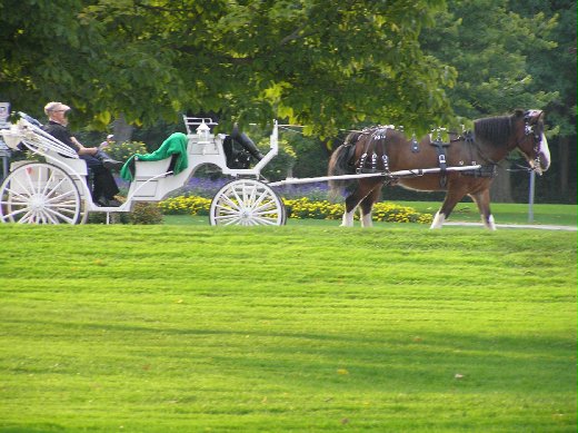 矗立其中,從一列列的樹幹,不經意窺視一部白色馬車穿梭