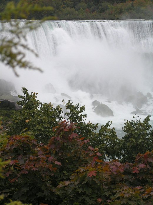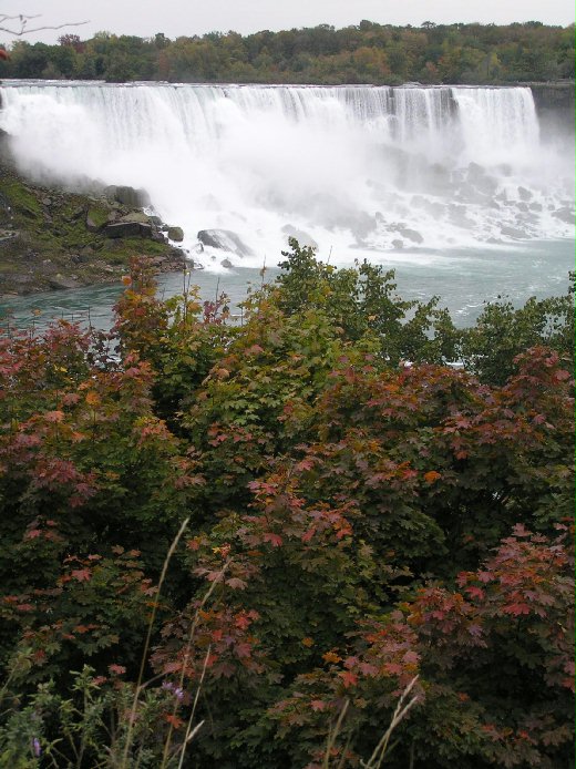瀑布上方的樹叢依然綠綠一片,楓葉尚未染紅大地.