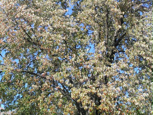 抬頭仰望天空,發現花園百年的楓樹,隨風搖曳,楓葉微紅,