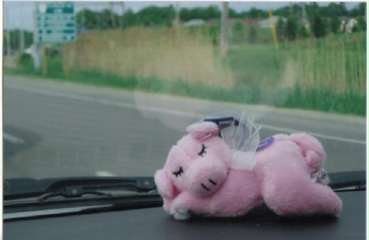 你看 連我車上那隻粉紅豬Baby 都睡ㄉ那....麼幸福 ~