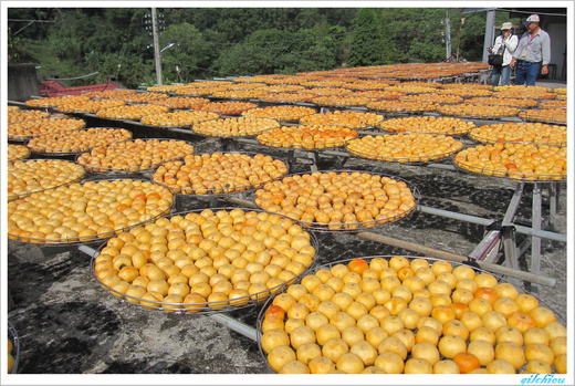 秋天陽高清風爽的季節,在每年的農曆九月初,新竹北埔這個地區都會因特殊的地形,颳起著名的「九降風」隨著秋風搖曳,以當地產的柿子,做出北埔大湖區的特產「石柿餅」,這裡產的石柿甜度、口感、肉質、纖維事是合作是餅,就是比較小顆,大家都知柿餅是一個很傳統的食品,在中醫的醫療用途中有它獨特的療效。