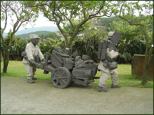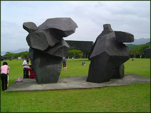 朱銘的美術館多了些新的作品,一群國民黨剛到台灣時的傷殘印象創作雕刻,和新設立的親子嬉水場所,還有令朱銘一舉成名的太極木雕系列,我們很用心的慢慢瞻仰著,佔地十一甲的三座山頭,當初朱銘先生就是有意不讓顢頇的金山政府將此山頭拿來填垃圾做掩埋場,所以才花下大筆資金保全了這連座的整片山頭,同時也救了山底下金山鎮全體的環境清潔,我們在山上看到了清澈的溪水,更看到水資源的利用,這就是肯接受教育和不肯接受教育的差別,一樣在臺灣長大的人,怎麼會對環境的理解能力差別這麼多~?