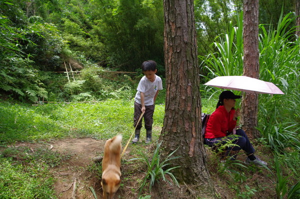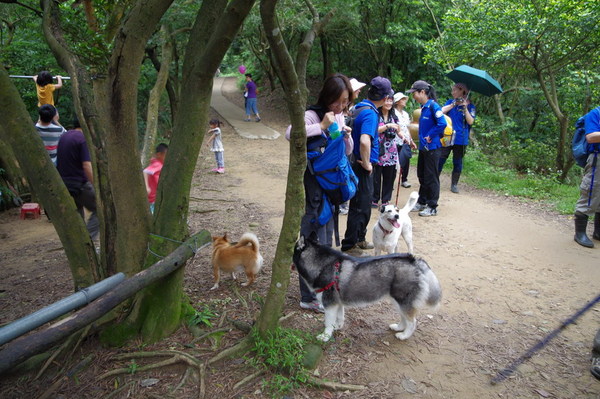 到達中途休息點,有一些健身設施,照片中是今天最搶眼的嬌客,3隻活潑的狗狗,名字記不太住,好像是"妞妞" "小白" "Amy"吧...