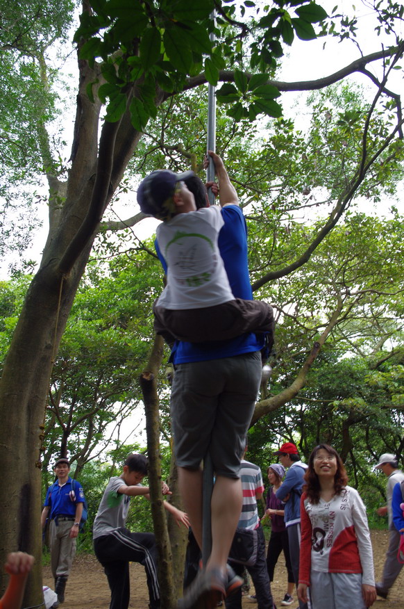 "娃娃魚"強健的體魄,一下子就爬竿上了頂點了,頗有美猴王之姿,今天來的幾個小朋友也躍躍欲試: