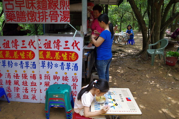 繼續前進的路上,看到一台小發財車在賣吃的,生意不錯,仔細瞧瞧,招牌菜似乎是"古早味麵線煎",看著一旁妹妹的盤中物,好像真的很好吃,有空一定要來嚐嚐: