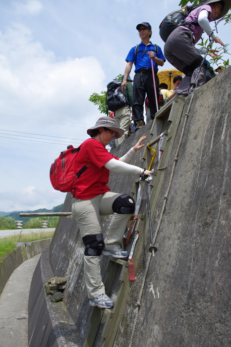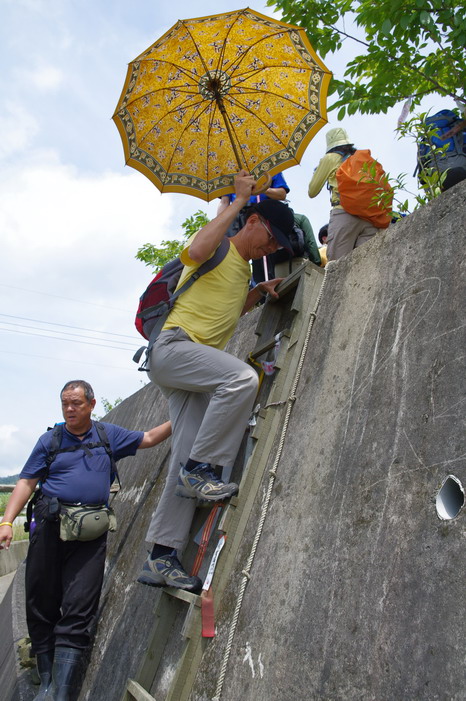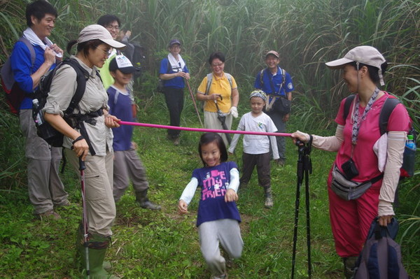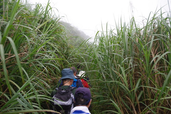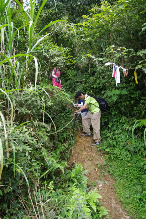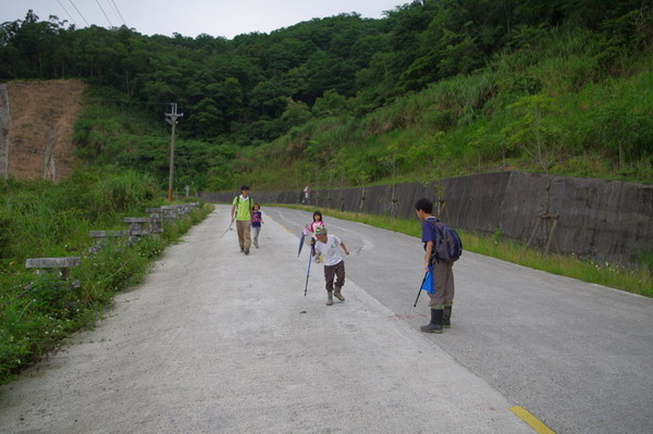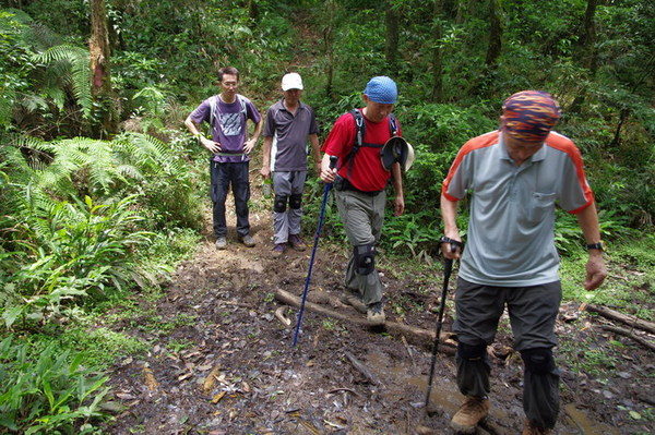又經過一小段的溼滑下坡,終於到了可以踢馬路下山的平地了,只是這段濕滑不好走,隊伍拉的有點長就是了:
