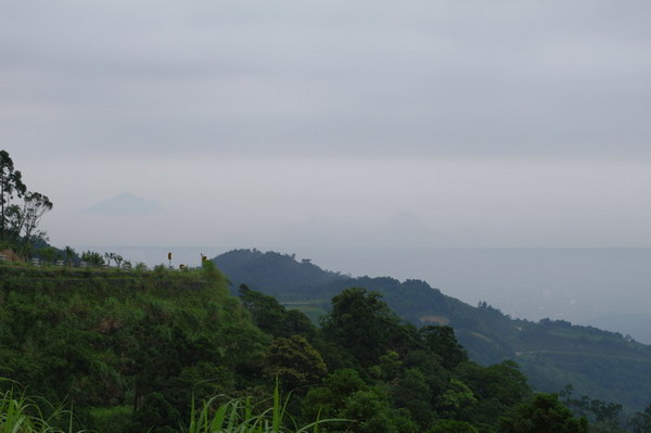 不久就接到了馬路,山下天氣較好,看的到遠方的海岸線,龜山島也出現在左側的遠方:
