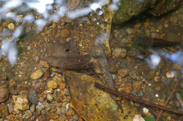 不時有小溪橫越古道而過,"堯堯"赫然發現小水塘裡有許多隻長腳蝦,可見水有多乾淨: