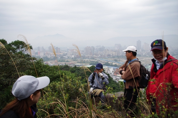 14:45到達軍艦岩,軍艦岩,標高192M,是大屯火山系最南端的一個山嶺,雪白壯觀的巨岩猶如一艘威武的艦艇,凌駕於巒巒綠波之上,不僅可以遠眺北面的大屯火山群,東望五指山系,更可西觀觀音火山群,並且南瞰淡水河與基隆河蜿蜒穿越的台北盆地,景致遼闊宜人: