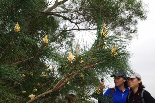 松樹在春天開花了,平常在山上都是撿掉在地上的松果,今天一路上到處都是開花的松樹:
