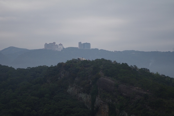 上來後視野不錯,今天台北盆地整天霧濛濛的,此時的觀音山,看過去就像茫茫大海裡的龜山島一樣飄渺美麗: