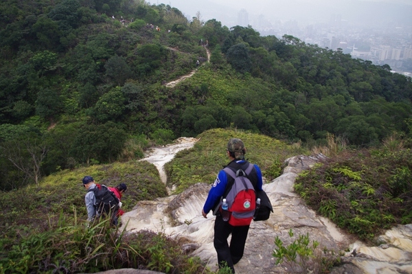 今天登山踏青的市民頗多,軍艦岩上也聚集了不少人,將近15:00,大家準備下山去: