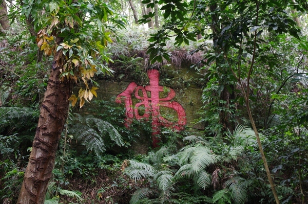 不久行至一T字路口,正前方的石頭上寫著一個大大的"佛"字,字的高度跟一個成人相當: