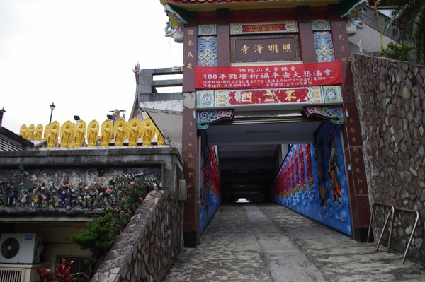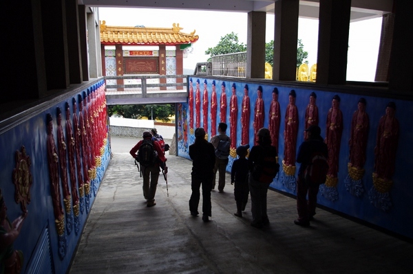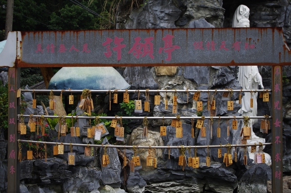 11:05進入另一側的照明寺(不是少林寺喔),此寺全名為照明淨寺,位於北投「威靈頓山莊」崇仰七路上,又稱情人廟,主神為保佑健康、婚姻、光明及財富的「四面千手觀音」。寺院裡的許願池,寫著「真情無人見,假情天有知」等字句,除了一般信徒外,更吸引眾多情侶前往祈願在此許下永恒的誓言,長年香火鼎盛,許願亭掛滿密密麻麻的許願牌: