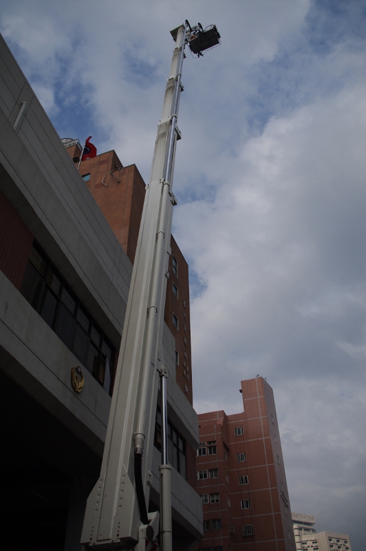 回程遇到消防對正在練習操作雲梯車,好高呀,拍張照片作紀錄: