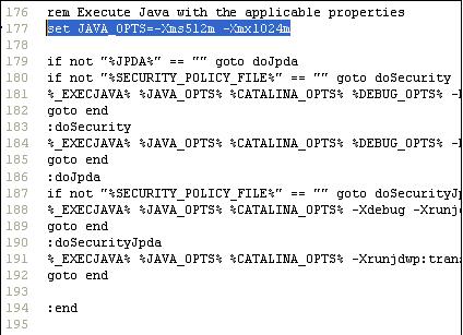 2. 加入 set JAVA_OPTS=-Xms512m -Xmx1024m