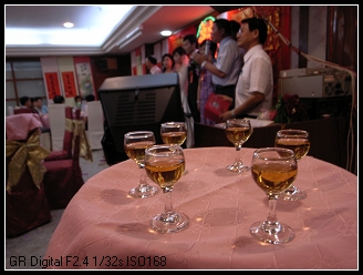 好不容易到了,花童到了鞭炮到了新人新禮車都在時辰內平安趕到,然後要踩瓦片過火爐一些其實我也不懂的規矩,幾個西裝長工開始搬東西有的沒的。好不容易可以休息一下,在新郎家廚房坐著。然後啊,是了,這樣辛苦,我們的新郎就拿該拿的東西出來了。