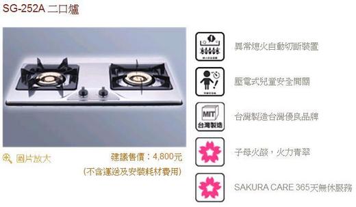 SG-252A 櫻花牌瓦斯爐歐化二口安全 檯面