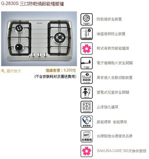 1.櫻花Sakura care全省售後服務保證(24小時內到府維修)