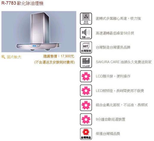 櫻花牌排油煙機歐式造型90公分不鏽鋼R-7783SXL★送全省安裝