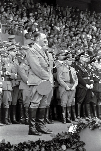 甫一上臺,希特勒對內擴大軍工生產,修築高速公路等浩大工程,對外則大談和平,頻頻與領國蒂結互不侵犯條約。一時間國內經濟快速增長,失業已成為過去時,每人擁有一輛“大眾”牌轎車幾乎成為懸在嘴邊張口可得的充饑畫餅,在1936年奧林匹克運動會上德國獲得的89年獎牌,似乎更使他有理由自譽為人民的“導師”,而其在國際事務中溫和反戰的演技,令當時世界上為數不菲的政要們呼籲將1938年的諾貝爾和平獎授予他這個戰爭惡魔。然而在這些表像的背後,卻是他甫一上臺的1935年就建立了對反對派施虐殺戮的第一批集中營,在利用群體抹殺個體存在的“國防運動”中,將15歲至18歲的青年納入“希特勒青年團”中接受軍事訓練,讓民眾從思想和體能上接受幷適應戰爭,而猶太人和鄰國則成為他多疑恐懼病癥的渲泄!