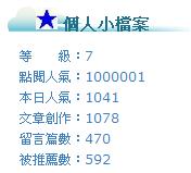 2009年9月28日中午12時28分(美國西岸時間),本部落格的點閱總數達到了一百萬,原本我想抓緊機會提取1000000的截圖,但這項“殊榮”最終歸于訪客,因此,我變成了自己部落格的第1000001次點擊者。