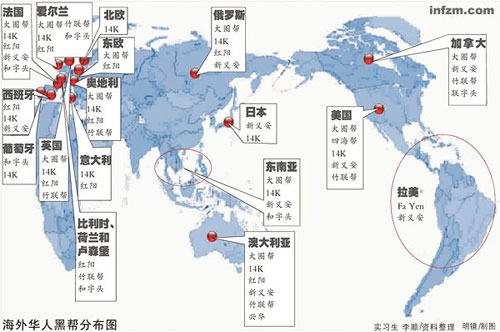 ·美國研究報告稱,大圈幫、四海幫、14K、竹聯幫等華人黑幫,活動範圍涵蓋全世界。